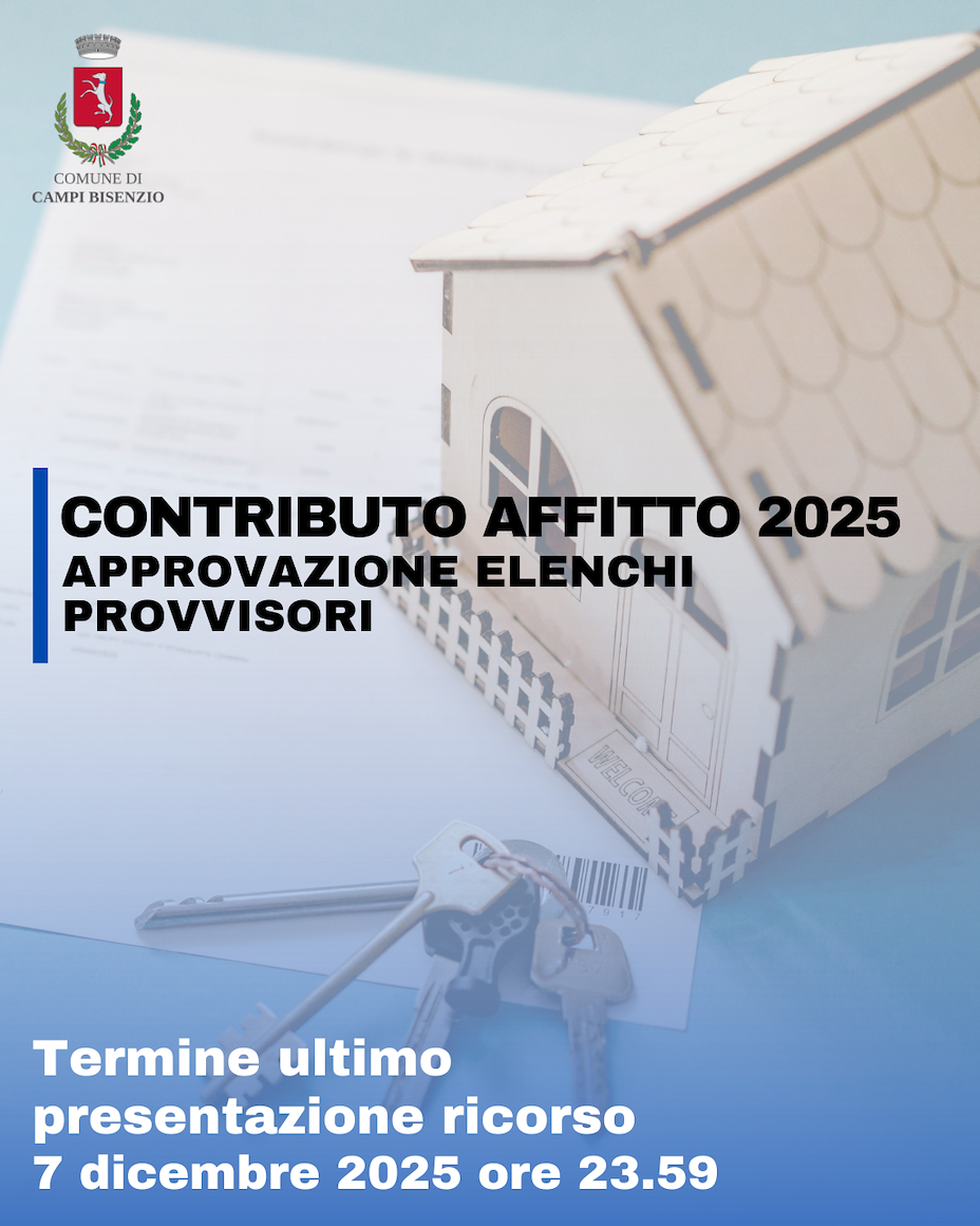 Con determinazione dirigenziale n. 1328 del 27/11/2025 sono stati approvati gli elenchi provvisori degli ammessi e degli esclusi dei partecipanti al bando per l'assegnazione di contributi ad integrazione dei canoni di locazione, anno 2025.